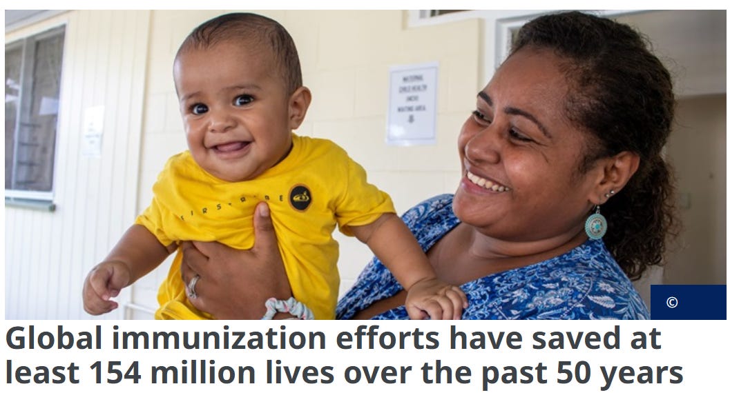 Over the past 50 years, vaccines have saved 154 million lives - of which 101 million were babies.